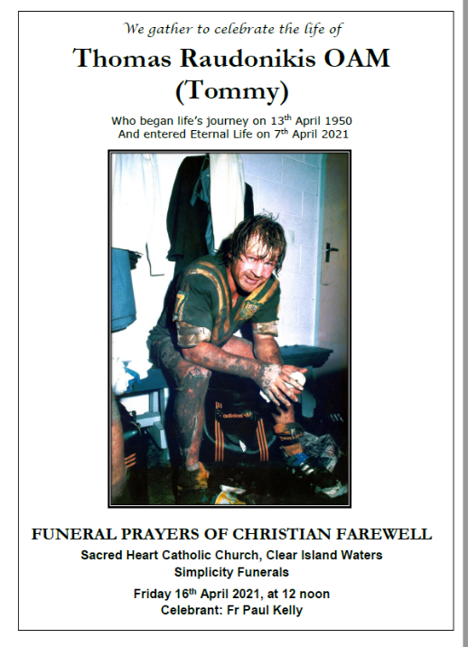 Thomas (Tommy) Raudonikis OAM had his Catholic Funeral Prayer service here at Sacred Heart Church on 16th April, at midday. Here is a link to saved livestream: https://livestream.com/able2/tommy-raudonikis-oam/videos/220001189